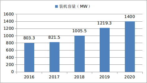 图1-2:2016—2020年石嘴山市新能源装机容量情况