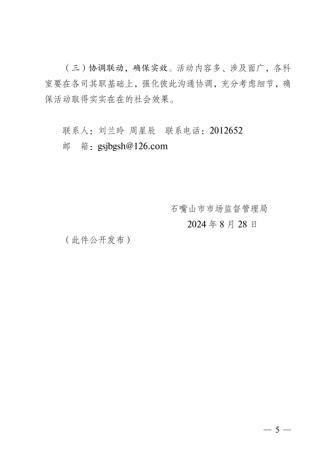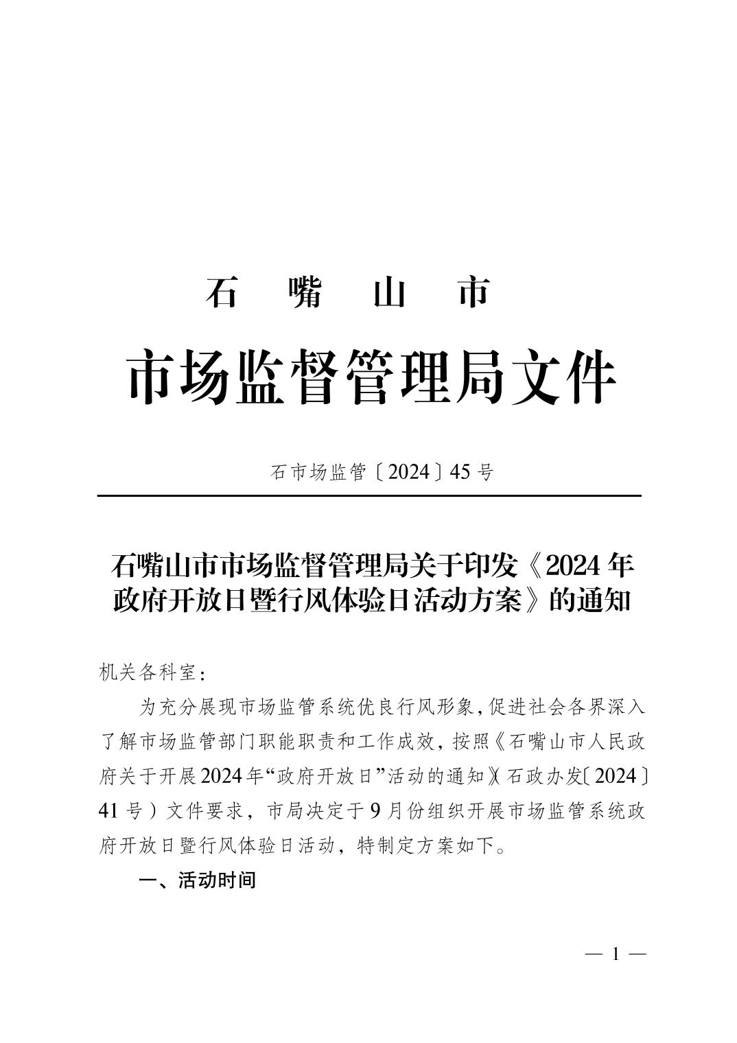 石嘴山市市场监督管理局关于印发《2024年政府开放日暨行风体验日活动方案》的通知