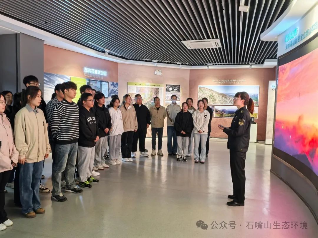 参观石嘴山市绿水青山就是金山银山实验创新基地,介绍了贺兰山、星海湖、华夏奇石山等10个主题馆和绿色生活、垃圾分类、转型发展3个互动体验馆,通过图片、实物、场景、视频、互动游戏等展陈方式,了解石嘴山市生态环境历史沿革。
