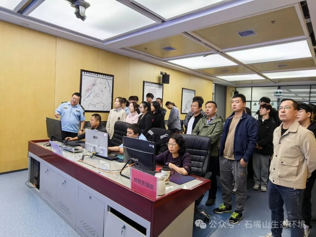 参观石嘴山市生态环境指挥调度中心,了解石嘴山市生态环境治理体系和治理能力现代化,重点展示了怎样将高科技与环境监管深度融合、高点视频监控技术、移动互联网技术等现代科技“智慧环保”平台的建设情况。并介绍了市生态环境指挥调度中心如何实现生态环境信息化“能看账、能预警、能调度、能决策”四个功能。