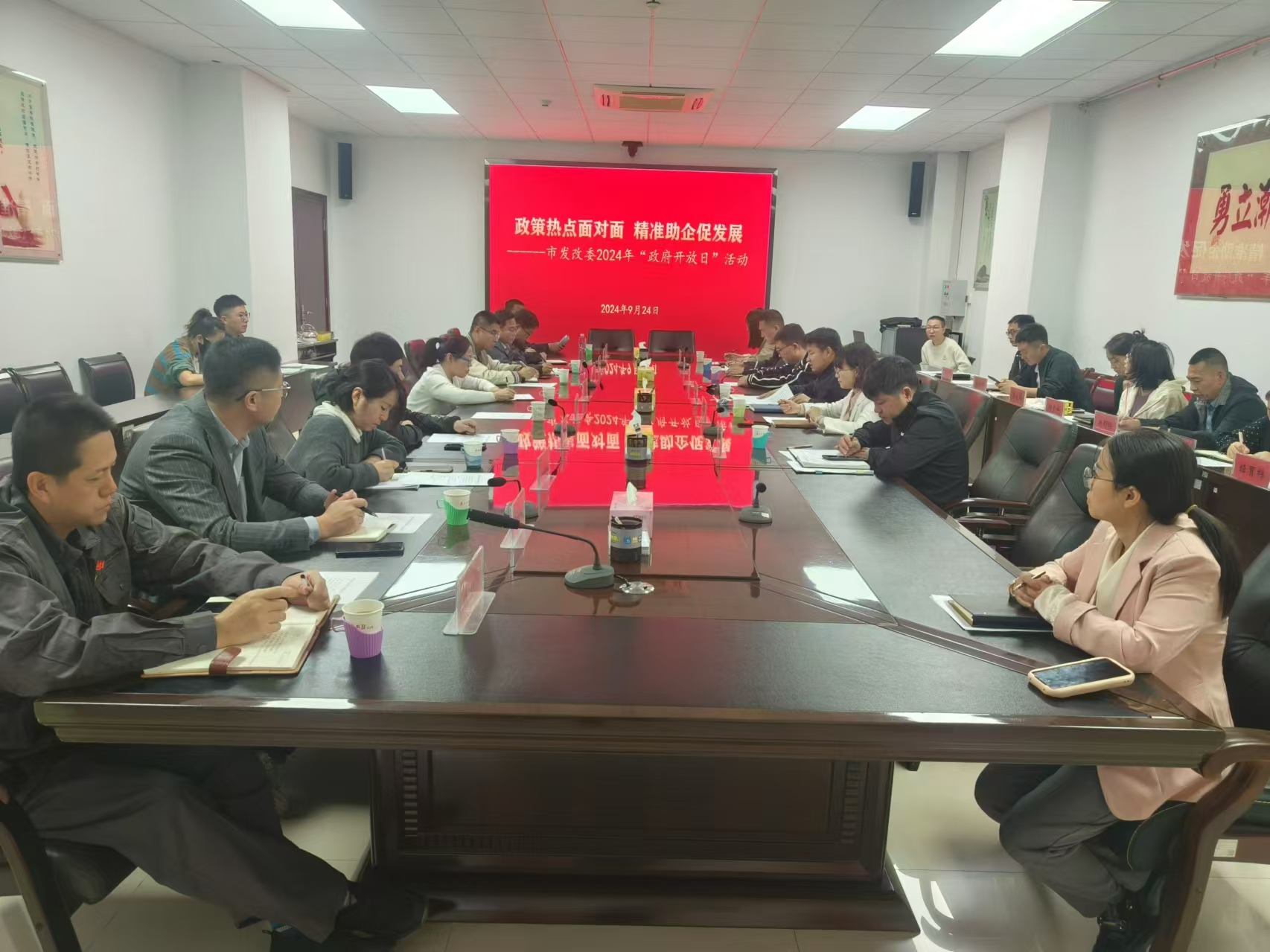 为进一步提升政府工作透明度、公信力,深化政企互动,推进阳光、透明政府建设,9月24日,市发改委组织开展以“政策热点面对面精准助企促发展”为主题的“政府开放日”活动,参加活动的有市直相关部门以及各企业代表共计30余人,活动采取政策解读、座谈交流以及问卷调查等多种形式。