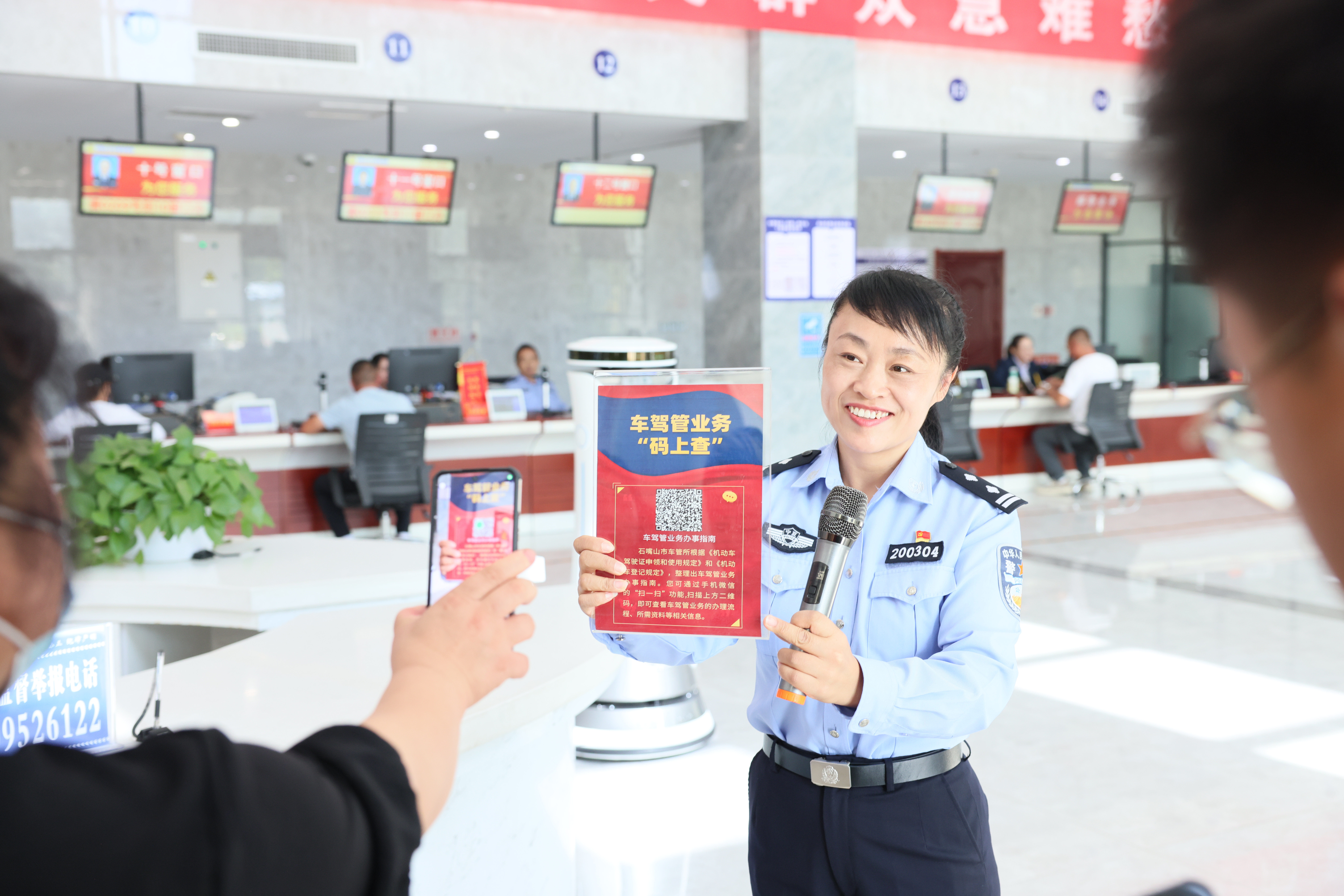在车辆管理所,代表们听取了车管所“党建+车管”党建品牌建设和窗口服务“一次办,马上办”工作情况的介绍,还在机器人带领的下,体验驾驶证办理流程。