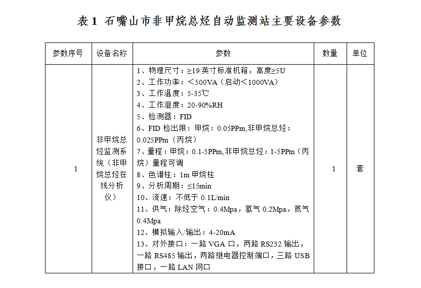 石嘴山市非甲烷总烃自动监测站运行维护项目说明及采购需求