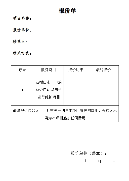 项目名称:石嘴山市非甲烷总烃自动监测站运行维护项目。